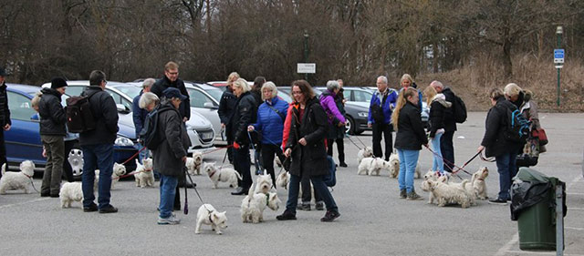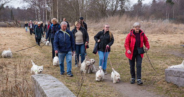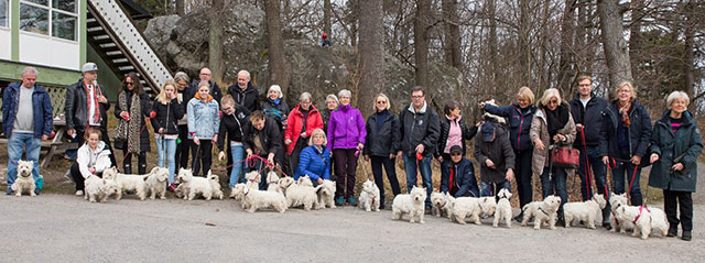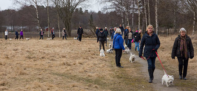 Underbar promenad på Gärdet söndagen den 3 april med 20 glada vovvar |