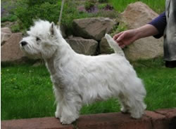 | NO UCH SE UCH NV-09 Terrawestie Tailwind Född: 2006-12-22 e. C.I.B NORD UCH NV-06 Wenrick's Santana u. NO UCH Hopecharm C U At Terrawestie Ägare & Uppfödare: Hilde Gullaksen Tog cert och blev svensk champion för Birgitta Hasselgren i Borås den 2 juli 2011. |